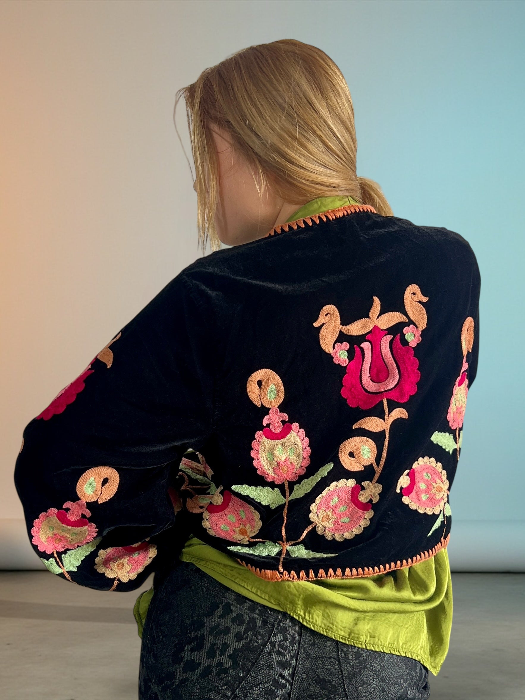 Bolero Corto de Terciopelo Bordado Floral – Hecho en India