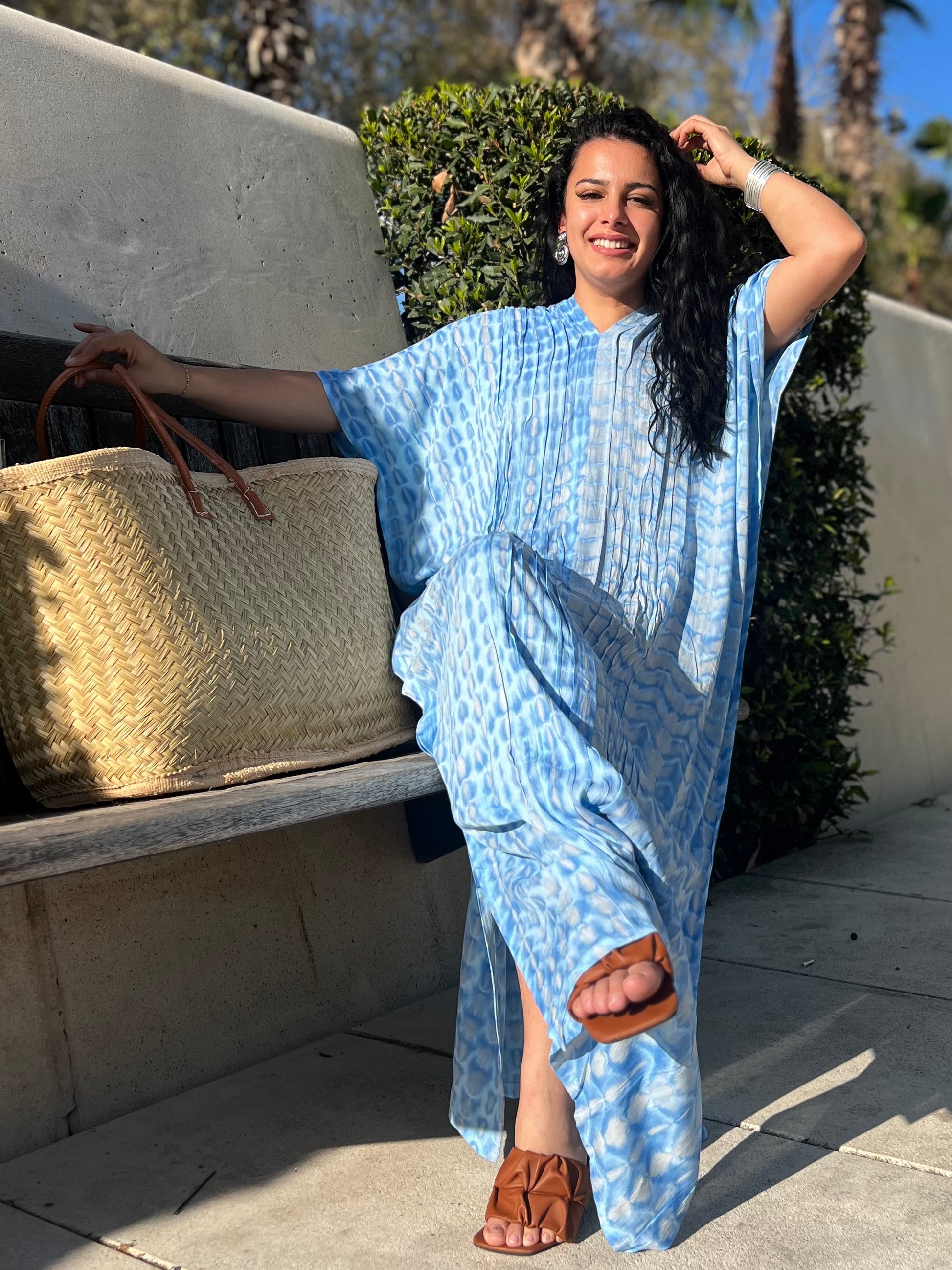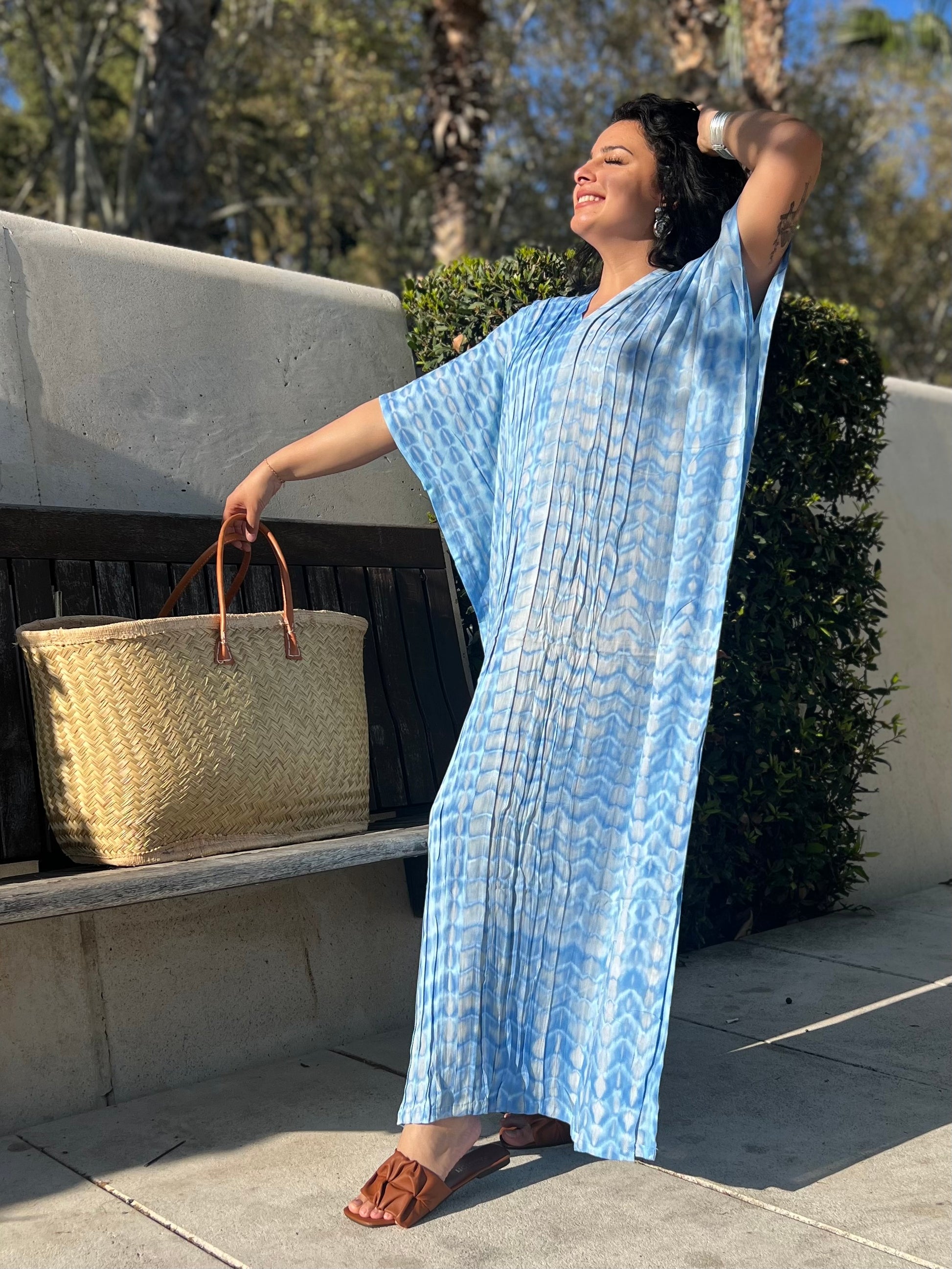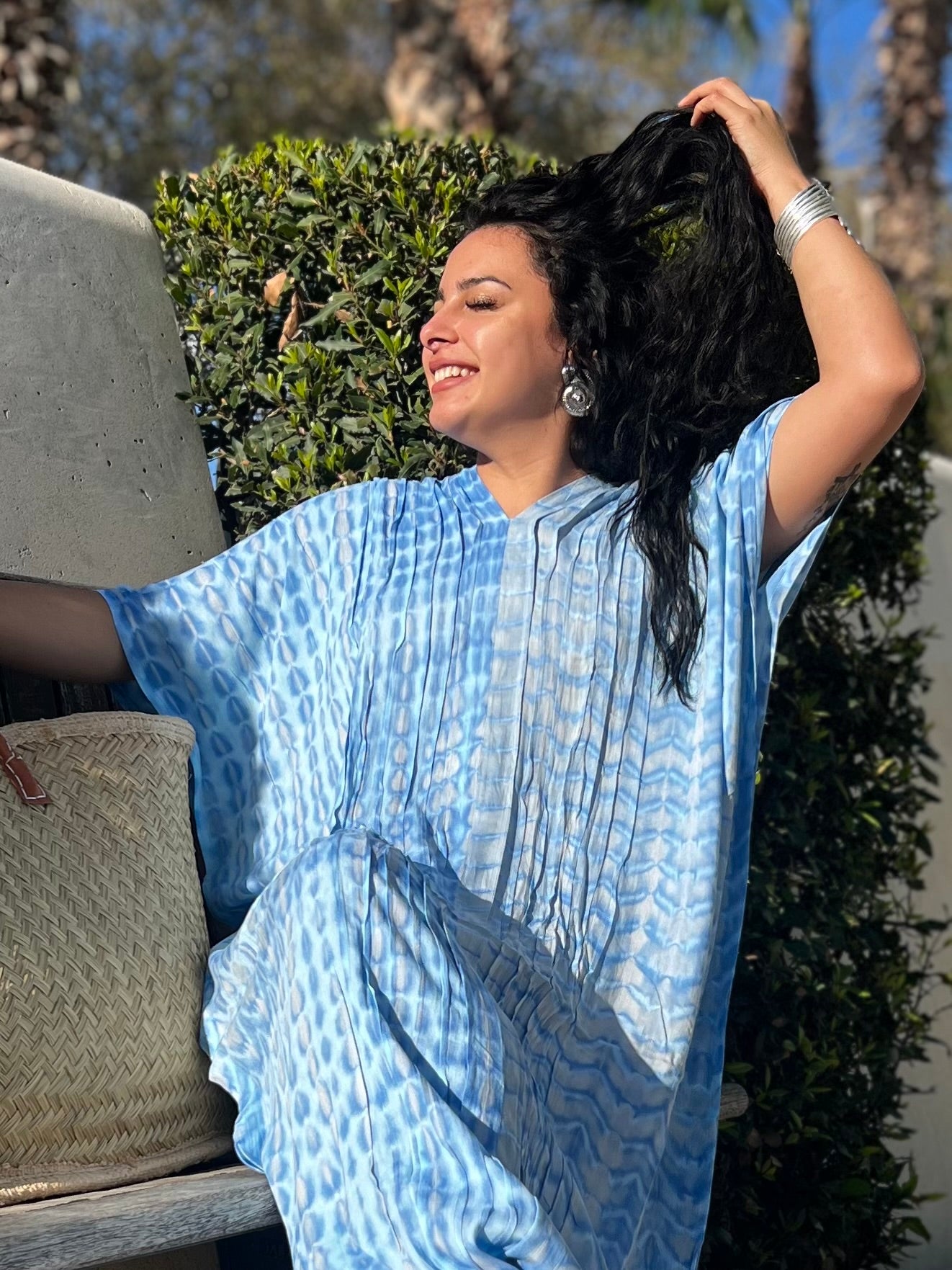 Disponible en una variedad de colores vibrantes y únicos, cada caftán es una pieza especial gracias a su teñido artesanal Tie-Dye.