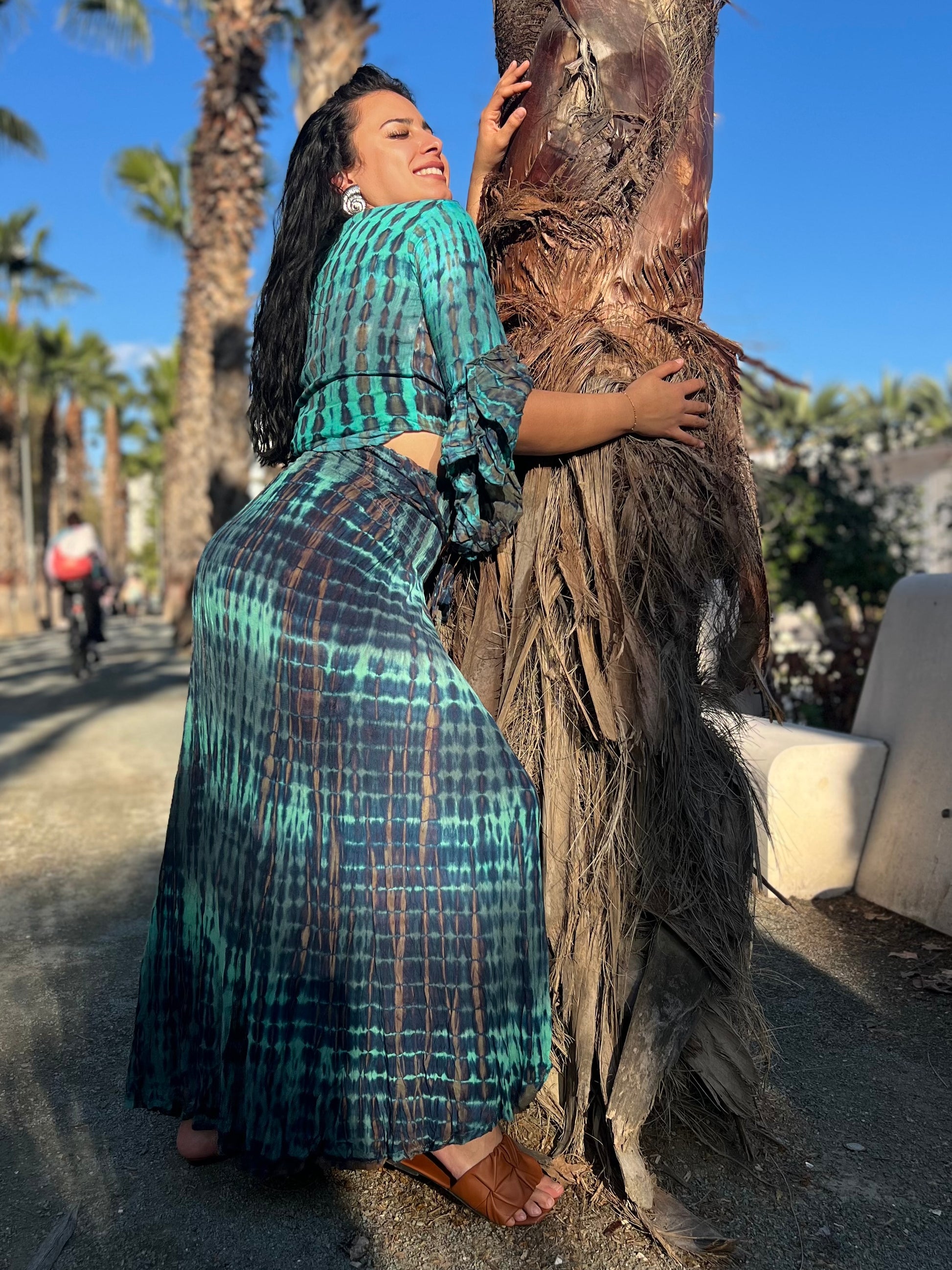 Añade un toque bohemio a tu estilo con esta hermosa falda tie-dye de rayón. Su diseño asimétrico, más corto en la parte delantera que en la trasera, crea un efecto fluido y elegante. La cintura elástica se adapta cómodamente a diferentes tallas, mientras que el cinturón fijo añade un detalle chic y estructurado. Disponible en una variedad de colores vibrantes, es la opción perfecta para un look fresco y versátil.