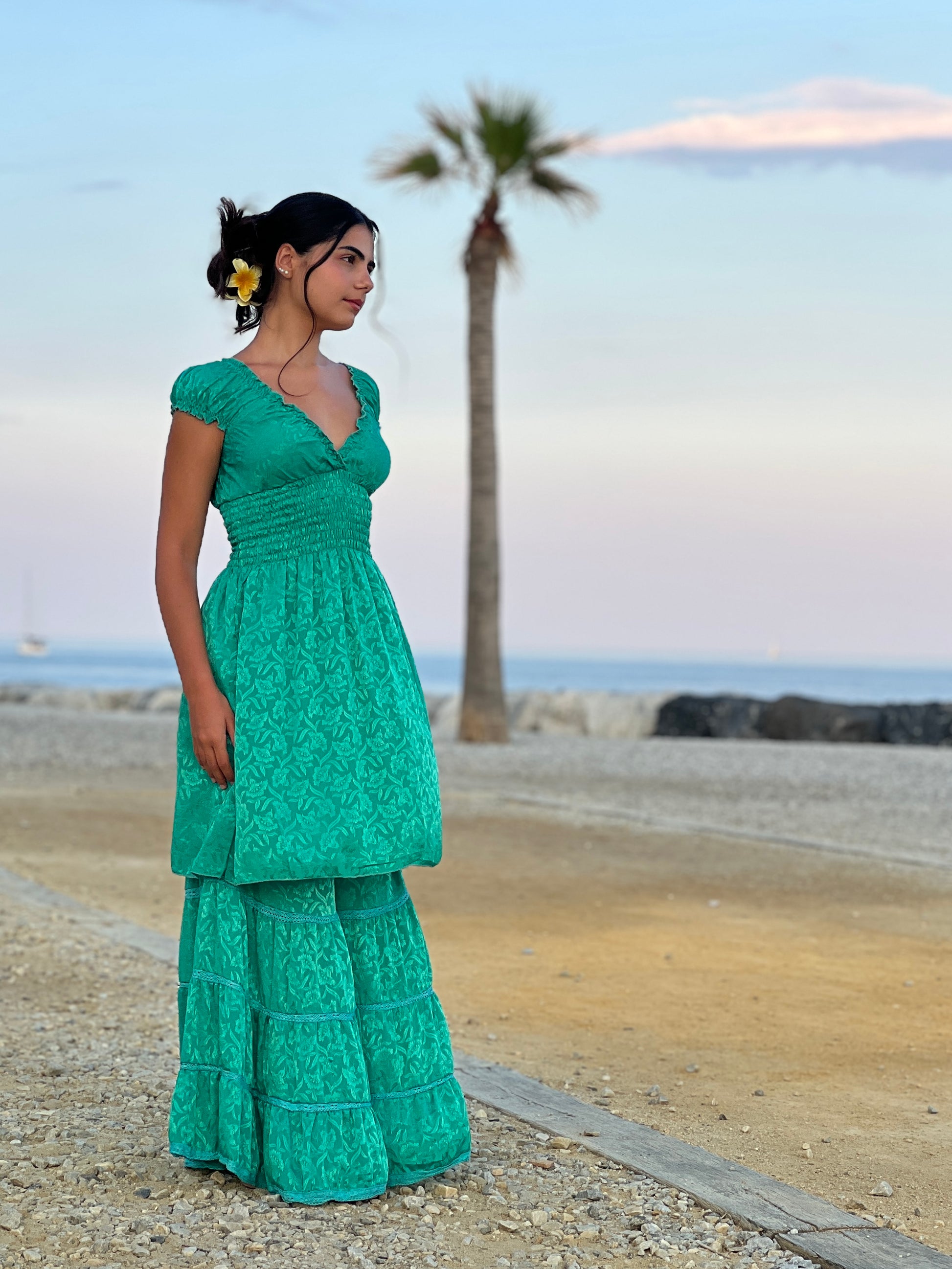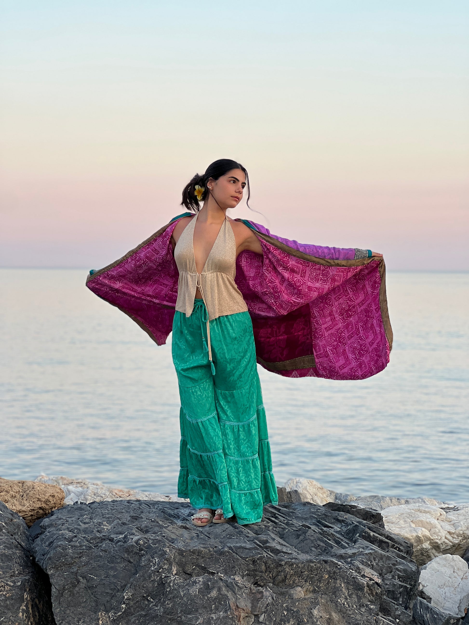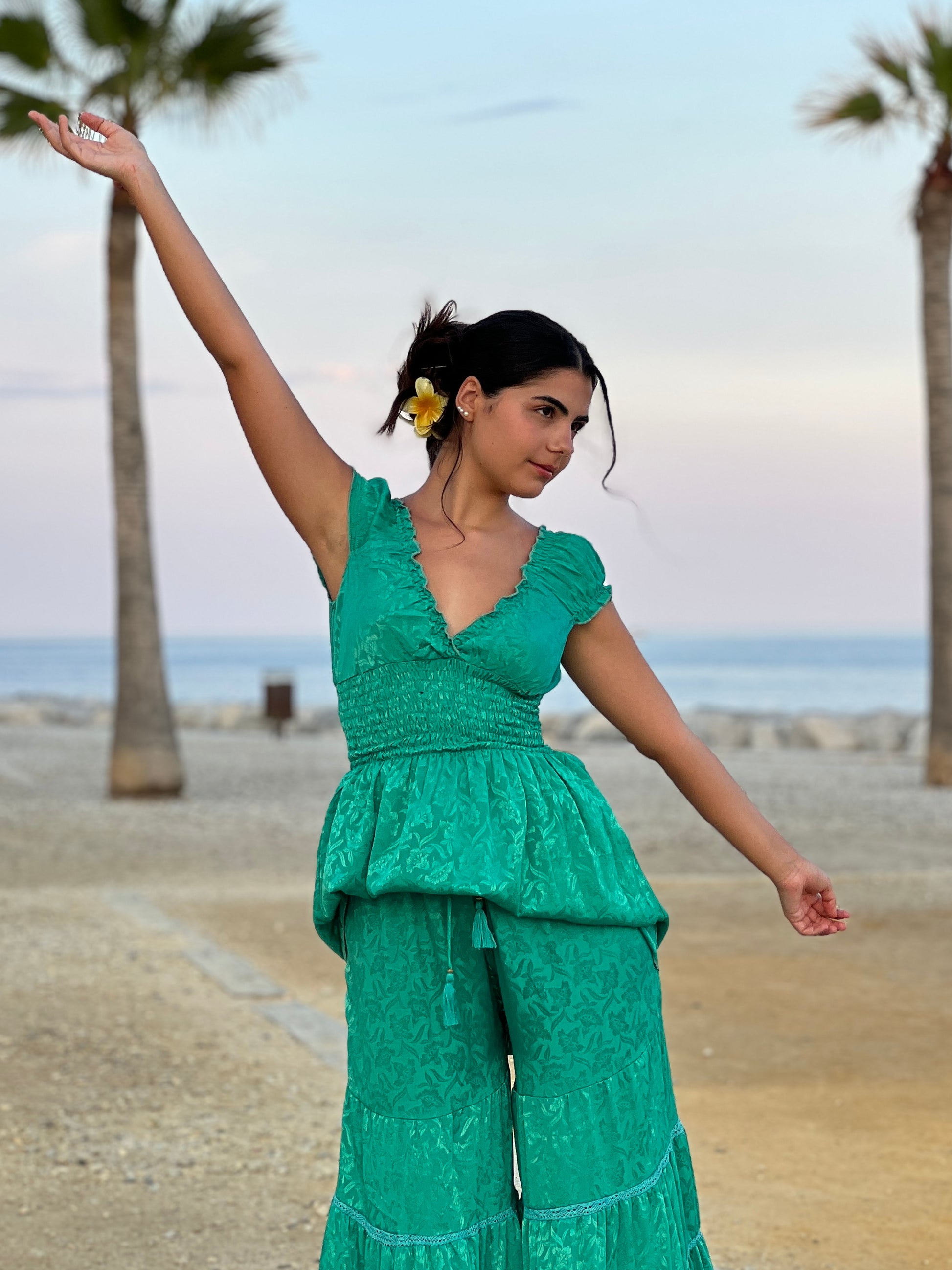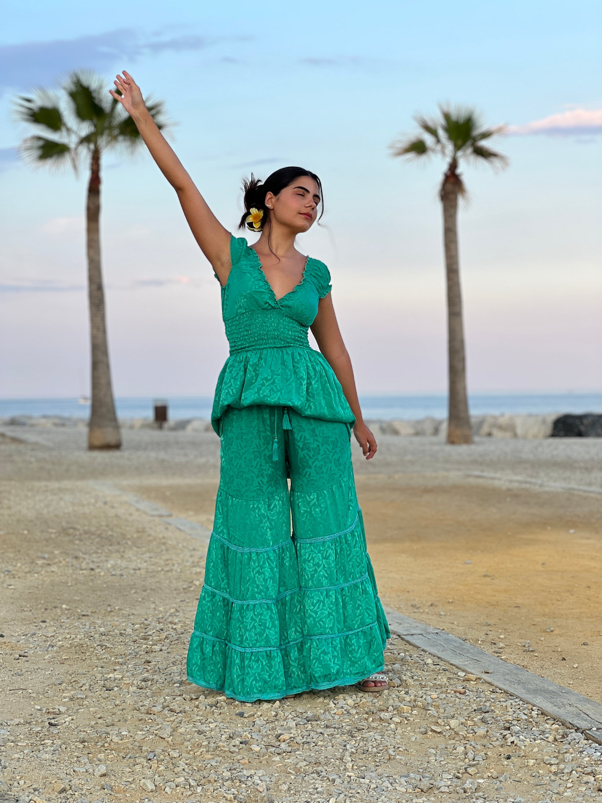 Luce elegante, fresca y con un toque de glamour con nuestro pantalón palazzo de seda fría, diseñado para mujeres que aman destacar. Confeccionado en seda fría , este pantalón ofrece una caída fluida, tacto suave y frescura inigualable. Ideal tanto para el día como para la noche.
