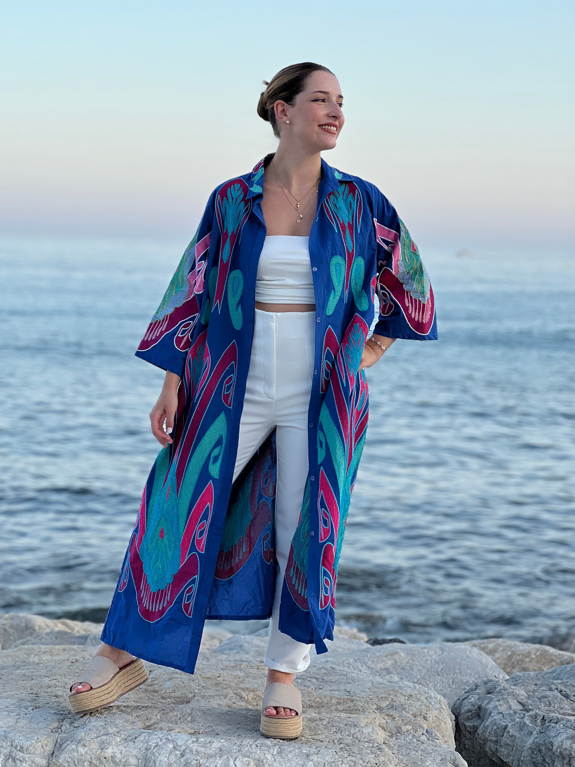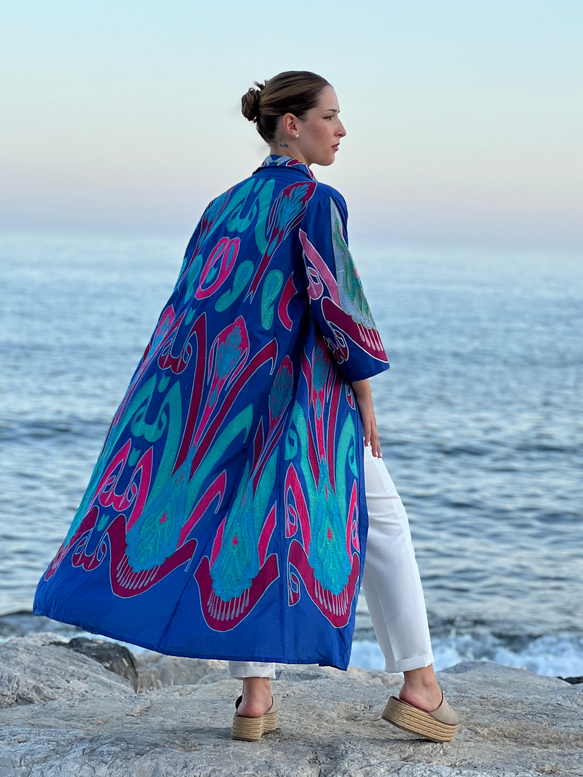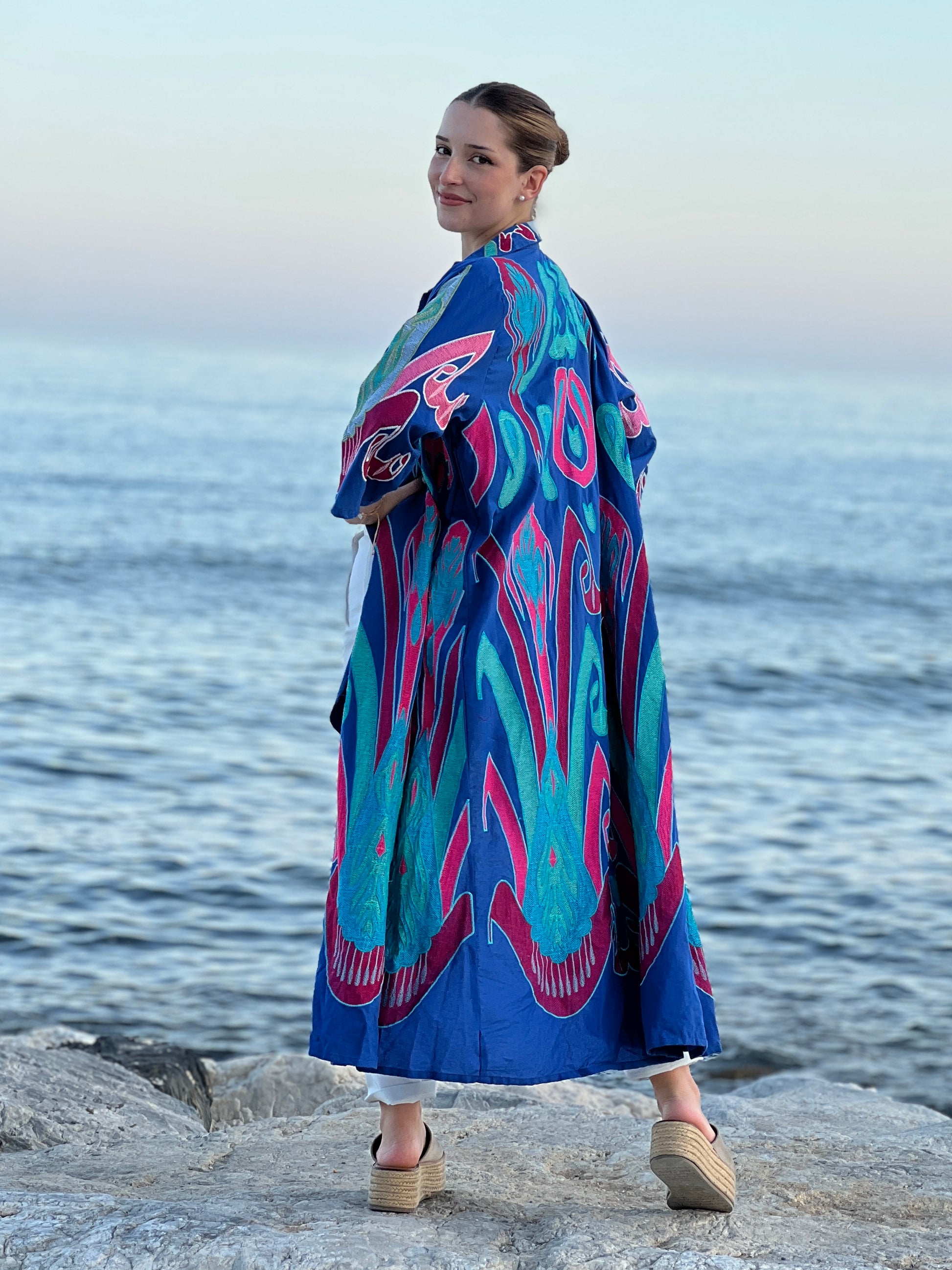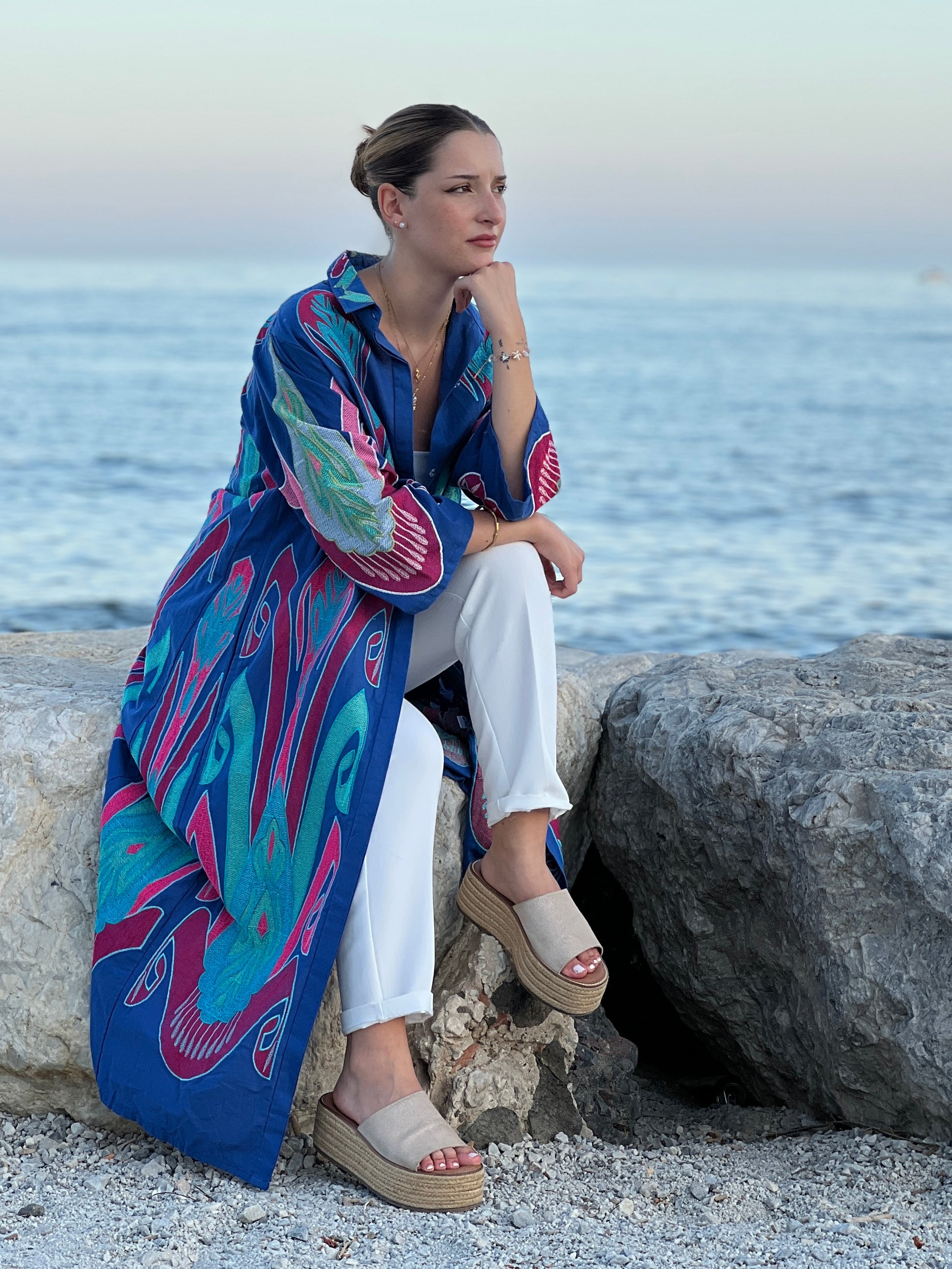 Una prenda con carácter, ideal para lucirla como vestido o kimono según el momento.